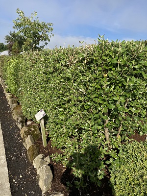 O’Learia. The smooth leafed version of sea holly. A very robust evergreen hedge for maritime garden. Very fast growing. If never clipped will grow to 15 foot which can provide excellent shelter in seaside areas without blocking too many views. Can also be maintained at any height once its clipped once a year. Best planted at 30cm centres. Standard spacing is 45cm.